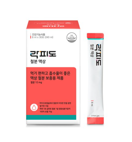 철분의 비릿한 맛때문에 섭취가 어려운 분들께 락피도 철분액상 영양제를 추천드립니다. 락피도 철분액상 영양제는 레시틴과 전분을 이용하여 코팅한 기술로 제조한 철분을 사용하여 안전성을 높이고 철분 고유의 비릿한 맛을 최소화한 철분 영양제입니다. 락피도 철분액상 영양제는 성장기 어린이부터 임산부까지 필요로 하는 철분 함량을 고려하여 1일 영양성분 기준치 100%를 함유하였습니다. 따라서 어린이는 1일 1포, 임산부는 1일 2포 섭취하시면 권장 섭취량을 모두 섭취하실 수 있습니다. 무엇보다 씹거나 삼키는 게 어려운 유아들도 간편하게 섭취할 수 있는 액상타입 영양제로, 섭취가 용이한 철분영양제를 찾으신다면 락피도 철분액상 영양제를 추천드립니다.